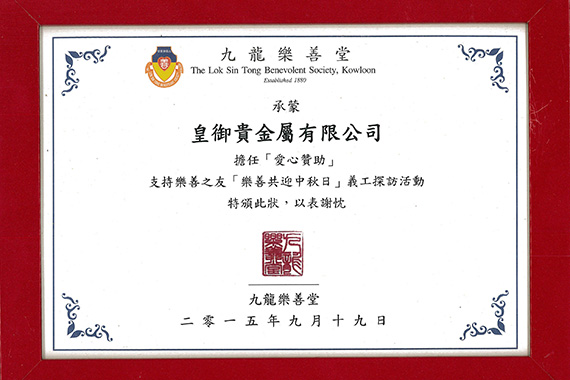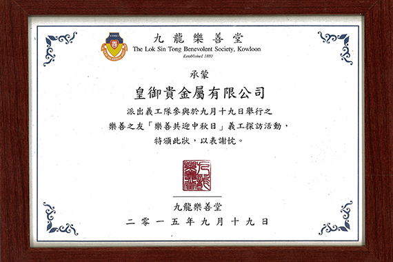 皇御贵金属秉持着“关怀由我开始,爱从这刻出发”的宗旨,积极参与到关怀社会、回馈社群的慈善活动当中。皇御贵金属全体员工热烈响应本次活动,不仅捐献善款,还身体力行踊跃参与到义工活动当中。在活动结束后,九龙乐善堂授予皇御贵金属的“爱心赞助”感谢状及义工团队感谢状,以兹对公司员工积极参与到社区慈善活动的感谢。皇御贵金属将会以此为荣,并在发展与社区互助互利的亲密关系上继续努力。
